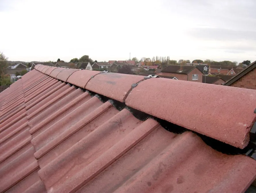 The ridge of a roof is especially vulnerable to damage by wind-driven rain and will often suffer considerable mortar damage over time, resulting in ridge tiles becoming displaced.